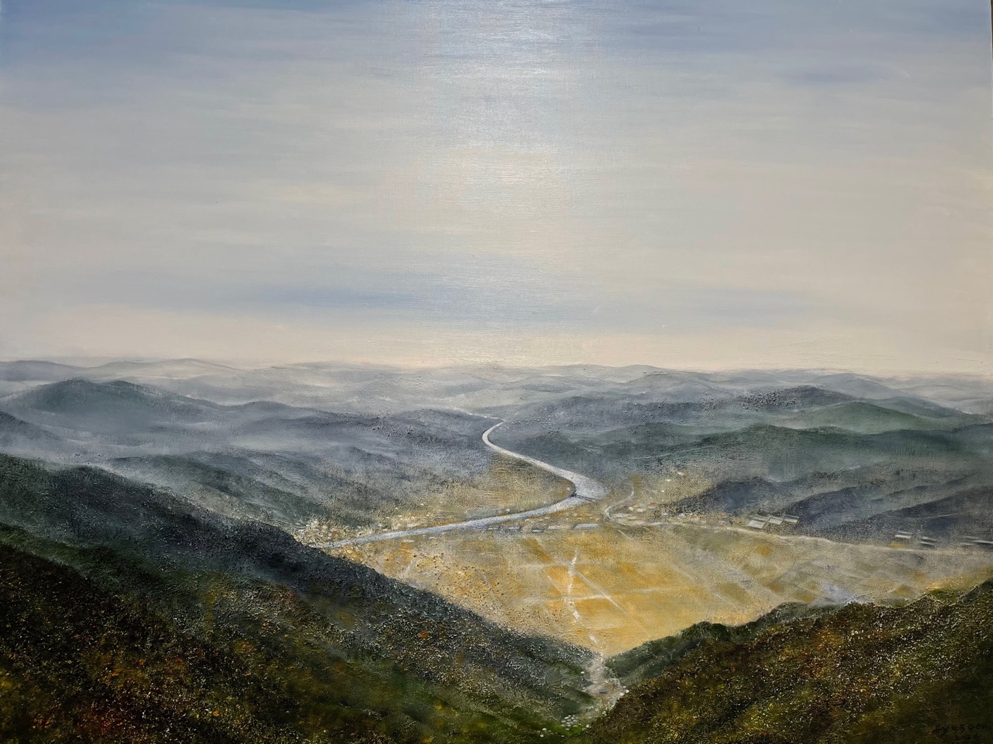 지난 가을 지리산 노고단에서 바라본 모습을 담아 그린 작품이다. 아득히 안개속에 잠긴 깊은 지리산 자락, 자욱한 안개밑으로 굽이 굽이 흐르는 섬진강, 안개속에 숨겨진 하동 평사리 평야…