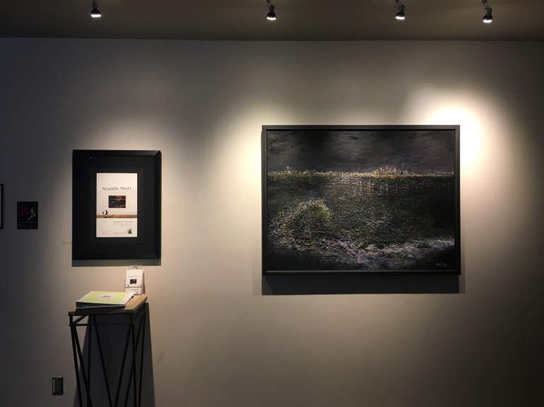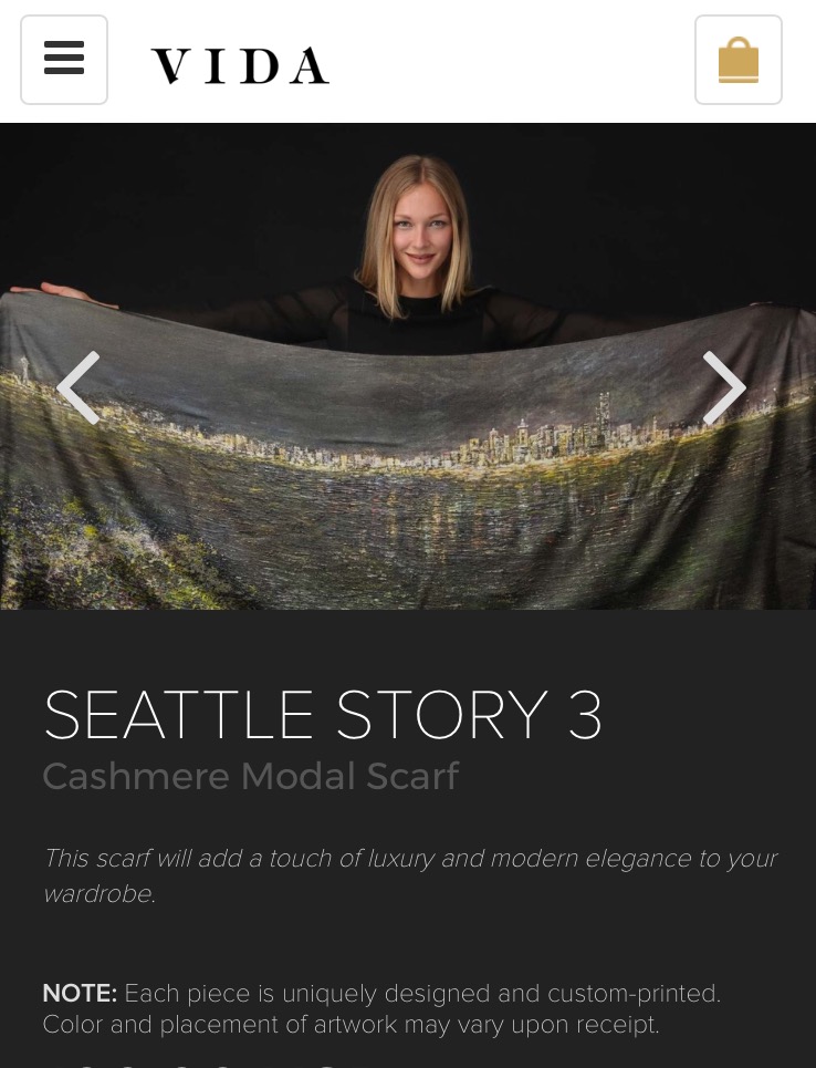 My painting “Seattle Story 3” on the scarf with VIDA collection