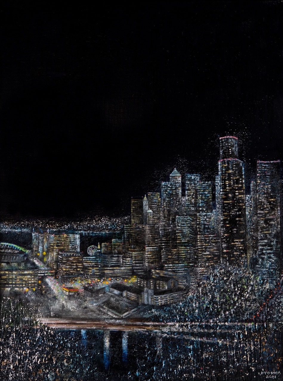 그림의 배경은 내 집에서 바라보는 Seattle의 야경이다.