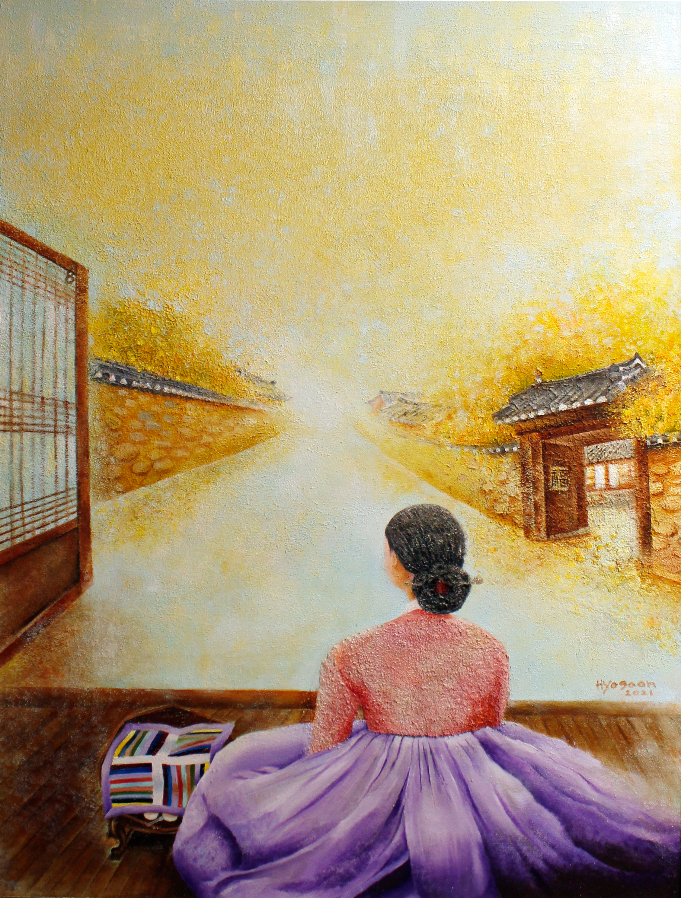 대문 활짝 열어 놓고 먼발치를 바라보는